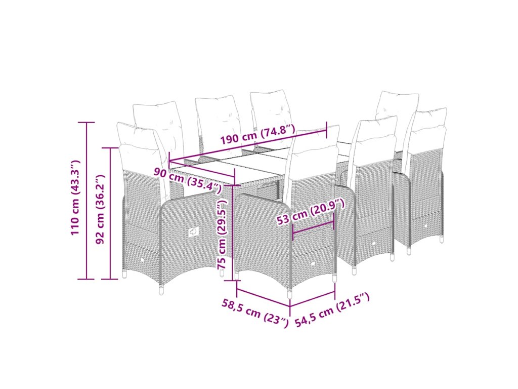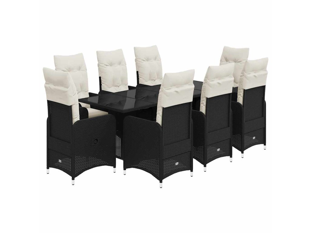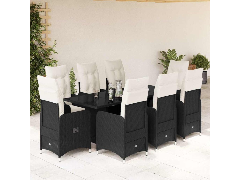 9dílný zahradní bistro set s poduškami černý polyratan 3276997