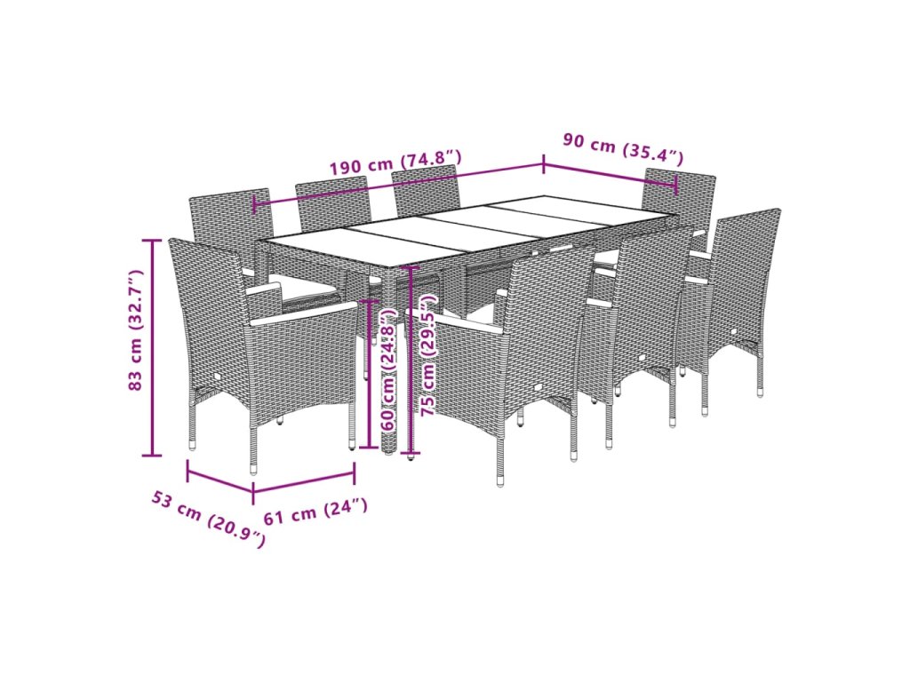 9dílný zahradní jídelní set a podušky černý polyratan a akácie 3278632
