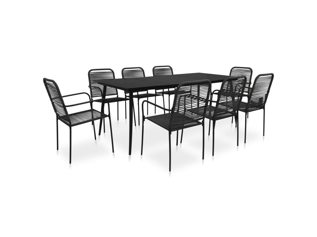 9dílný zahradní jídelní set bavlněné provázky a ocel černý 3058280