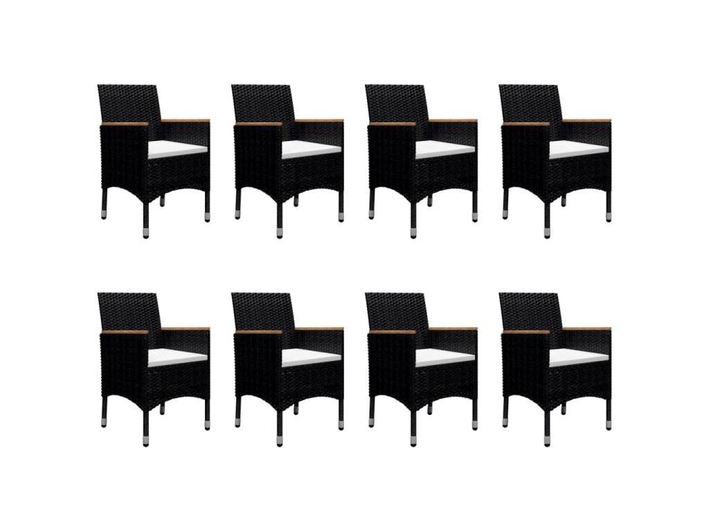 Jídelní stůl je zhotovený z masivního akáciového dřeva s olejovaným povrchem, takže je stabilní, odolný a nenáročný na údržbu. Jídelní židle mají rám z práškově lakované oceli, opletený klimaticky odolným PE ratanem, jsou tudíž robustní a snadno se čistí. Zahradní židle mají zaoblená opěradla a područky, což přispívá k většímu pohodlí, stejně jako jejich ergonomický tvar. Područky jsou navíc nádherně zdobené masivním akáciovým dřevem, které jim dodává rustikální šarm. Hustě polstrované podušky vám při sezení zaručí mimořádný komfort.