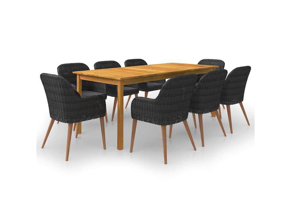 9dílný zahradní jídelní set černý 3067920