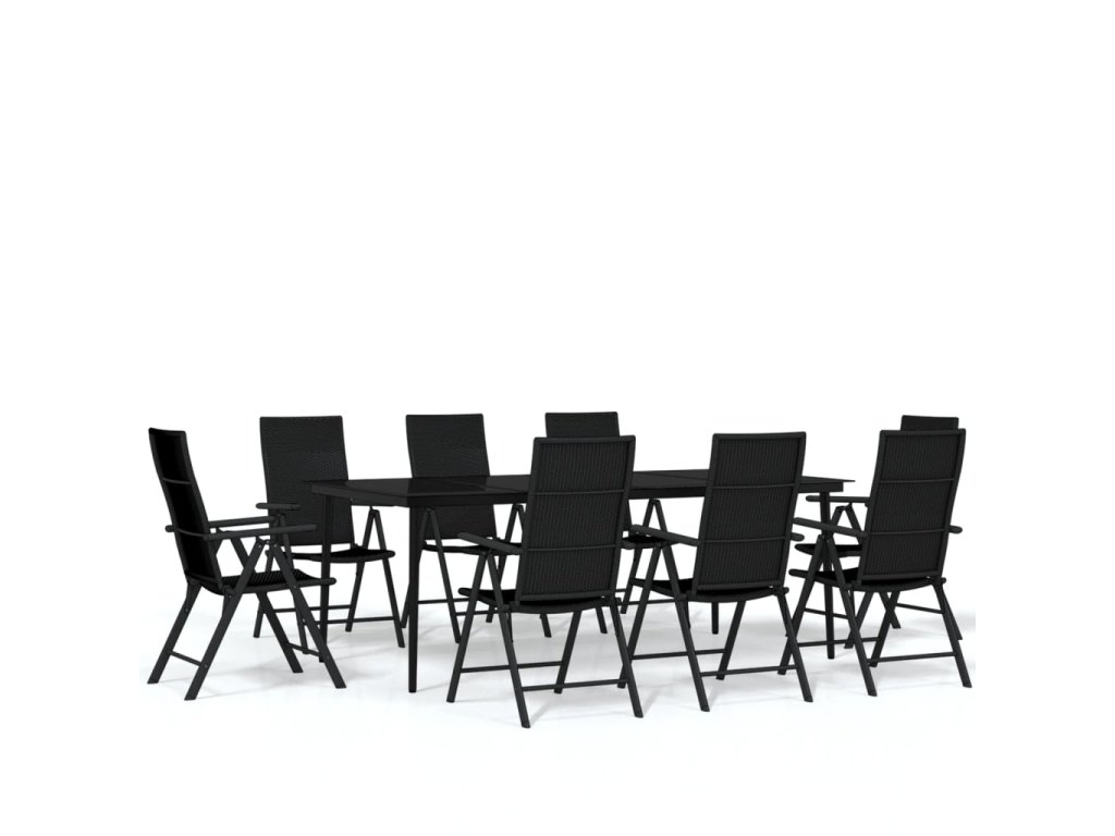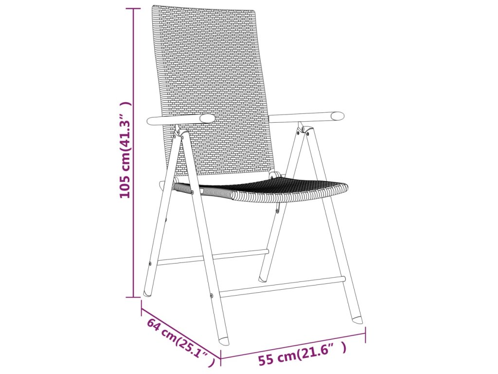 Zahradní jídelní stůl má práškově lakovaný ocelový rám, takže je robustní a stabilní a ideální pro venkovní použití. Hladká skleněná deska stolu se snadno čistí vlhkým hadříkem a skvěle vám poslouží k podávání jídla a pití nebo k vystavení různých dekorativních předmětů. Židle jsou vyrobené z PE ratanu, jsou proto lehké a voděodolné. Jejich opěradla lze navíc naklonit do 7 různých poloh, abyste si mohli vždy najít ten nejpohodlnější způsob sezení. Pokud židle zrovna nepoužíváte, můžete je složit, a ušetřit tak místo.
