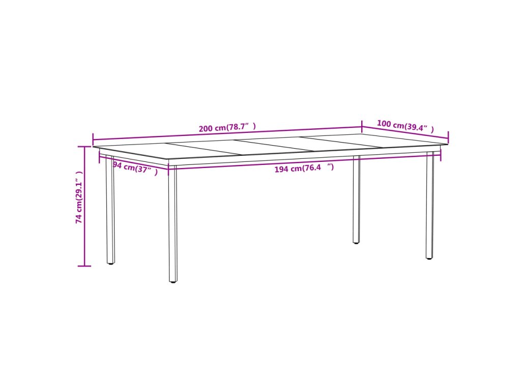 - Rozměry: 200 x 100 x 74 cm (D x Š x V)