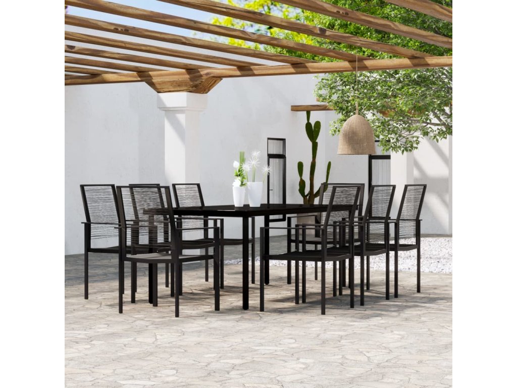 Jídelní set na terasu má práškově lakovaný ocelový rám, stůl i židle jsou tedy velice stabilní a mají dlouhou životnost. Hladká skleněná stolní deska se snadno čistí vlhkým hadříkem a skvěle vám poslouží k podávání jídla a pití nebo k vystavení různých dekorativních předmětů. Židle z voděodolného dutého PVC ratanu jsou odolné, nenáročné na údržbu a vhodné ke každodennímu venkovnímu použití. Opěradla vám navíc při sezení zajistí maximální pohodlí.