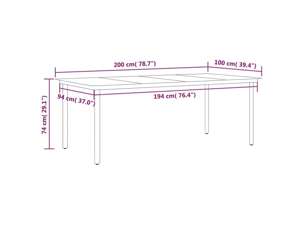 - Rozměry: 200 x 100 x 74 cm (D x Š x V)