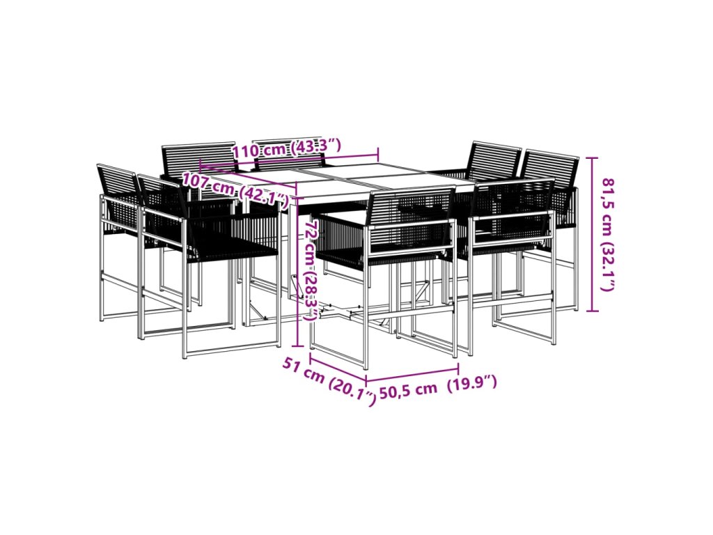 - Robustní a stabilní rám: Ocelový rám s práškovým nástřikem zajišťuje, že zahradní nábytek je pevný a stabilní pro každodenní venkovní použití.