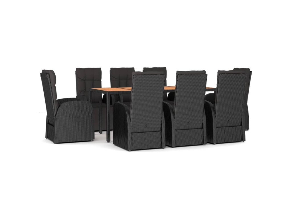 9dílný zahradní jídelní set černý polyratan a masivní akácie 3157611