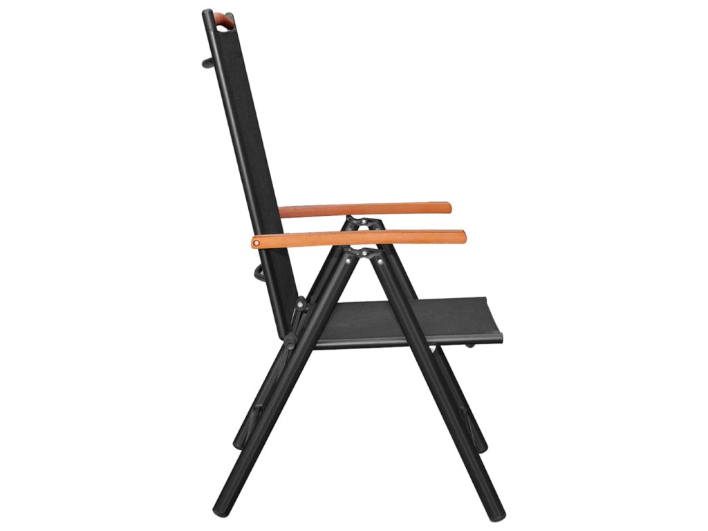 Rám z práškově lakovaného hliníku dodává nábytku na bytelnosti a prodlužuje jeho životnost. Zahradní židle mají sedáky a opěradla ušitá z na dotek měkkého textilenu. Opěradla lze navíc naklánět do 7 různých poloh, aby se vám vždy příjemně sedělo. Područky a horní příčka propůjčují židlím stylový vzhled. Křesla lze také složit, aby vám zbytečně nepřekážela, když je zrovna nepoužíváte. Stůl má desku z dřevoplastu, snadno se tedy čistí a hodí se pro venkovní použití.