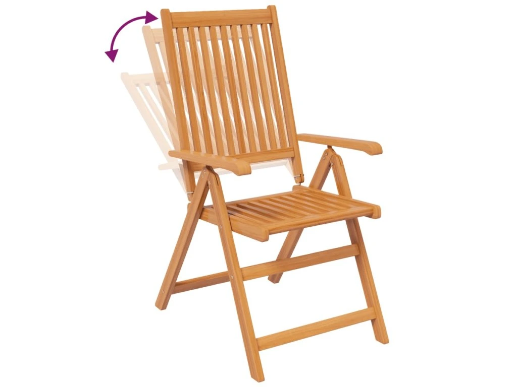 - Nastavitelná a skládací židle: Zahradní židli lze nastavit do 5 poloh, a tak vám při sezení zajistí optimální pohodlí. Pokud jídelní židle právě nepoužíváte, můžete je složit, aby vám zbytečně nepřekážely.