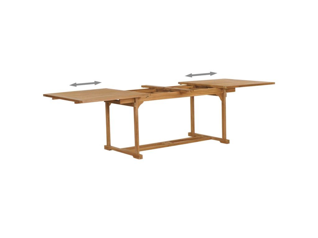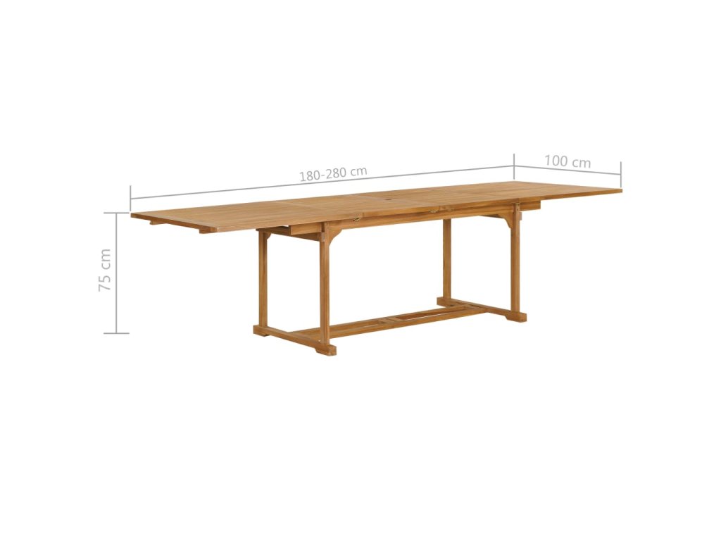 Nábytek odolává vlhkosti a hmyzu. Je ošetřený krásnou povrchovou úpravou, která dřevu dává teplou barvu. Jídelní stůl se speciálním designem je možné rozšířit až o maximálně 280 cm, pokud je zapotřebí více místa. Má také otvor pro deštník, který poskytuje ochranu před sluncem. Židle můžete složit, když je nepoužíváte. Poskytnou vám pohodlí a skvělé místo, kde můžete trávit čas s rodinou a přáteli. Tuto sadu lze navíc snadno čistit vlhkým hadříkem.