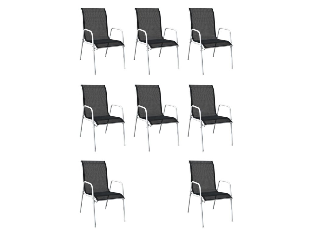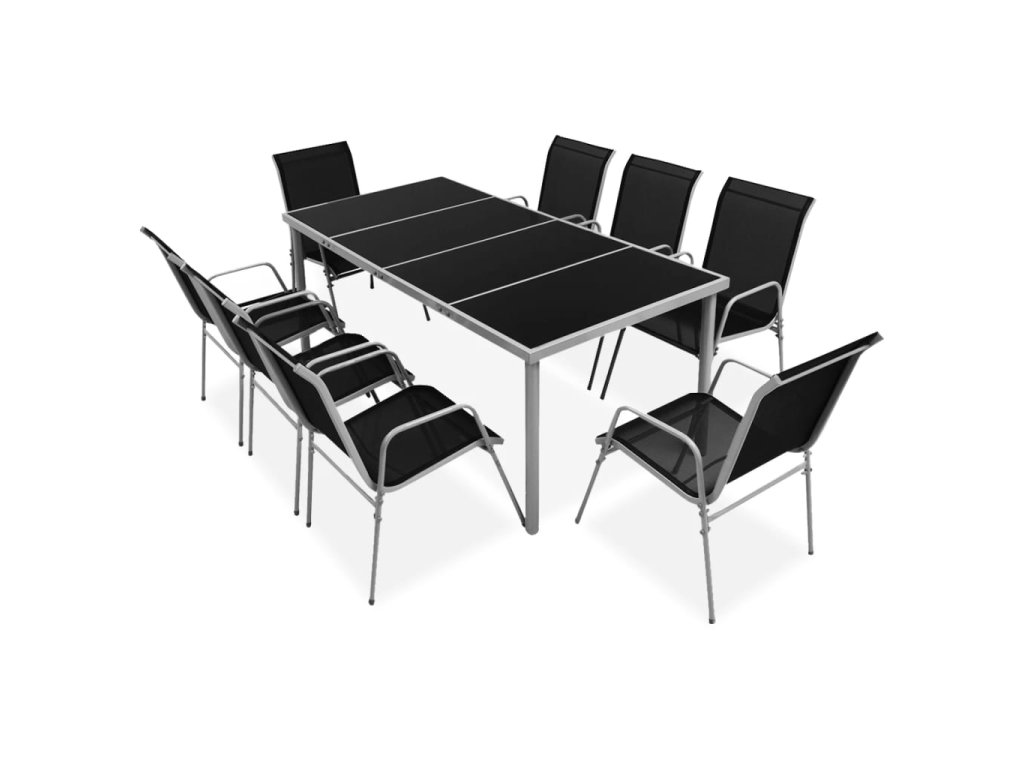 Náš jídelní set se skládá z 1 stolu se skleněnou deskou a 8 textilenových židlí. Jídelní set má stylový design a odolný ocelový rám, a proto je rozhodně perfektní volbou pro váš venkovní prostor. Jednoduchá elegance tohoto jídelního setu vytvoří z každého stolování zvláštní událost.