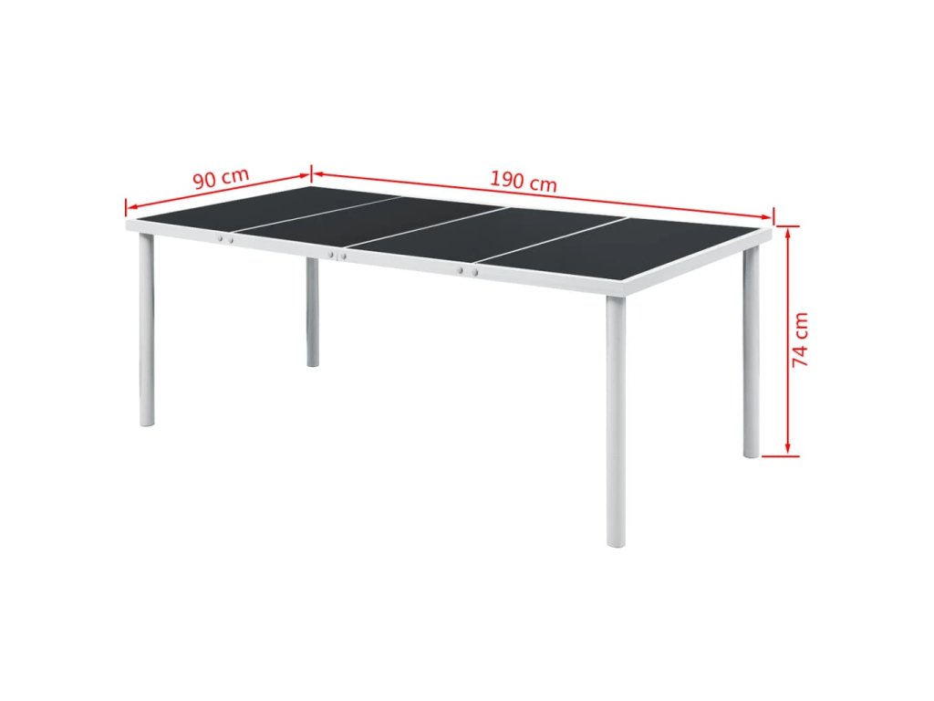 - Materiál stolu: deska z tvrzeného skla + práškově lakovaný ocelový rám