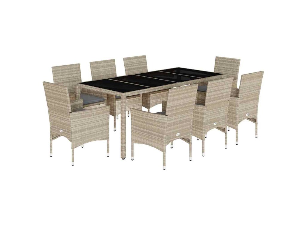 9dílný zahradní jídelní set podušky světle šedý polyratan sklo 3278578