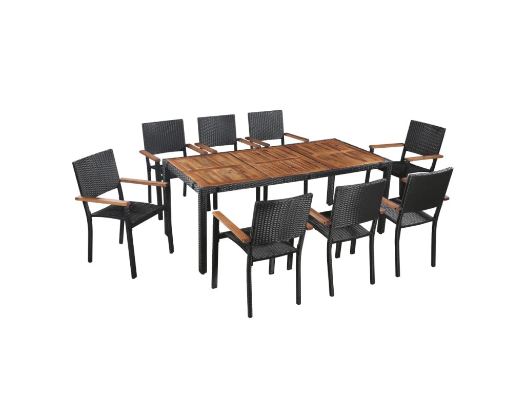9dílný zahradní jídelní set polyratan a akáciové dřevo černý 43936
