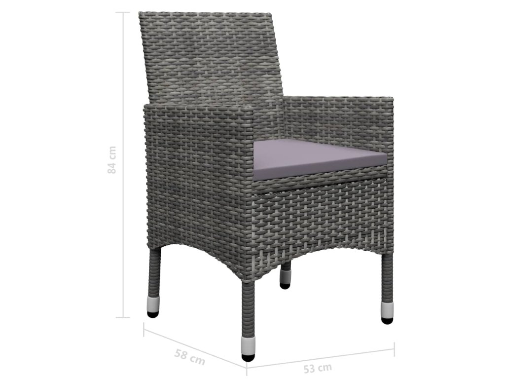 Jídelní set je vyrobený z PE ratanu s pevným rámem z práškově lakované oceli, takže je klimaticky odolný a robustní. Stolní deska ze zesíleného tvrzeného skla má hladký povrch, který se snadno čistí. Každé křesílko je opatřené odnímatelnou silně polstrovanou poduškou, abyste si ve volném čase užili zaslouženého pohodlí. Všechny potahy na podušky mají zip a jsou snímatelné. Lehká konstrukce umožňuje nenáročné přesouvání, přeskupení a přenášení všech dílů sestavy.