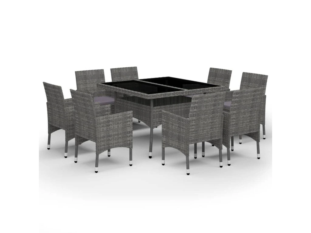 9dílný zahradní jídelní set polyratan a sklo šedý 3058339