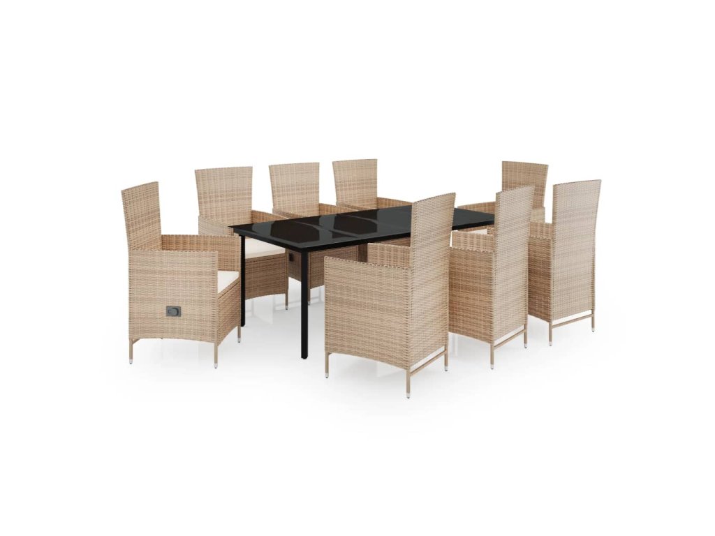 9dílný zahradní jídelní set s poduškami béžový 3099442