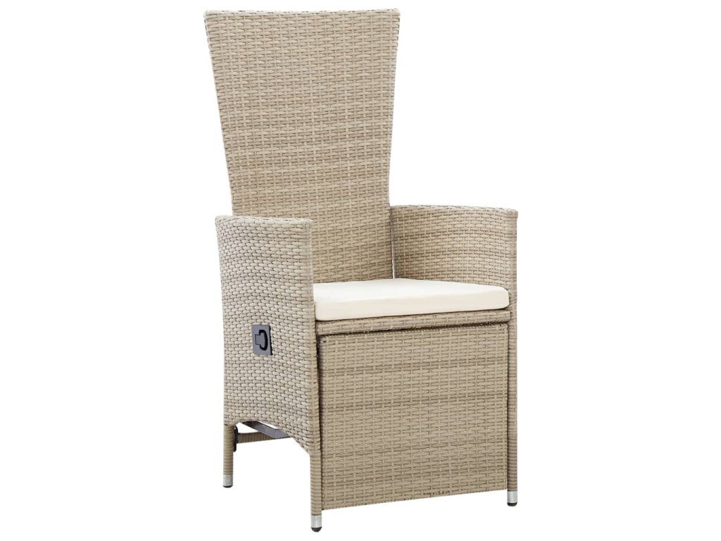 Stůl i židle mají rámy z práškově lakované oceli, jsou tedy robustní, stabilní a vhodné pro každodenní venkovní použití. Židle jsou vyrobené z voděodolného PE ratanu, takže se snadno čistí a hodně toho vydrží. Opěradlo i opěrku nohou si můžete nastavit zatažením za tlačítko na boku. Nábytek má lehkou konstrukci, lze ho tudíž bez námahy přesouvat. Husté polstrované podušky na sedák vám navíc zajistí mimořádné pohodlí. Jejich polyesterové potahy jsou nenáročné na údržbu a dají se stáhnout a vyprat. Hladká skleněná stolní deska, kterou jednoduše očistíte vlhkým hadříkem, je ideální k podávání jídla a pití nebo k vystavení různých dekorativních předmětů.