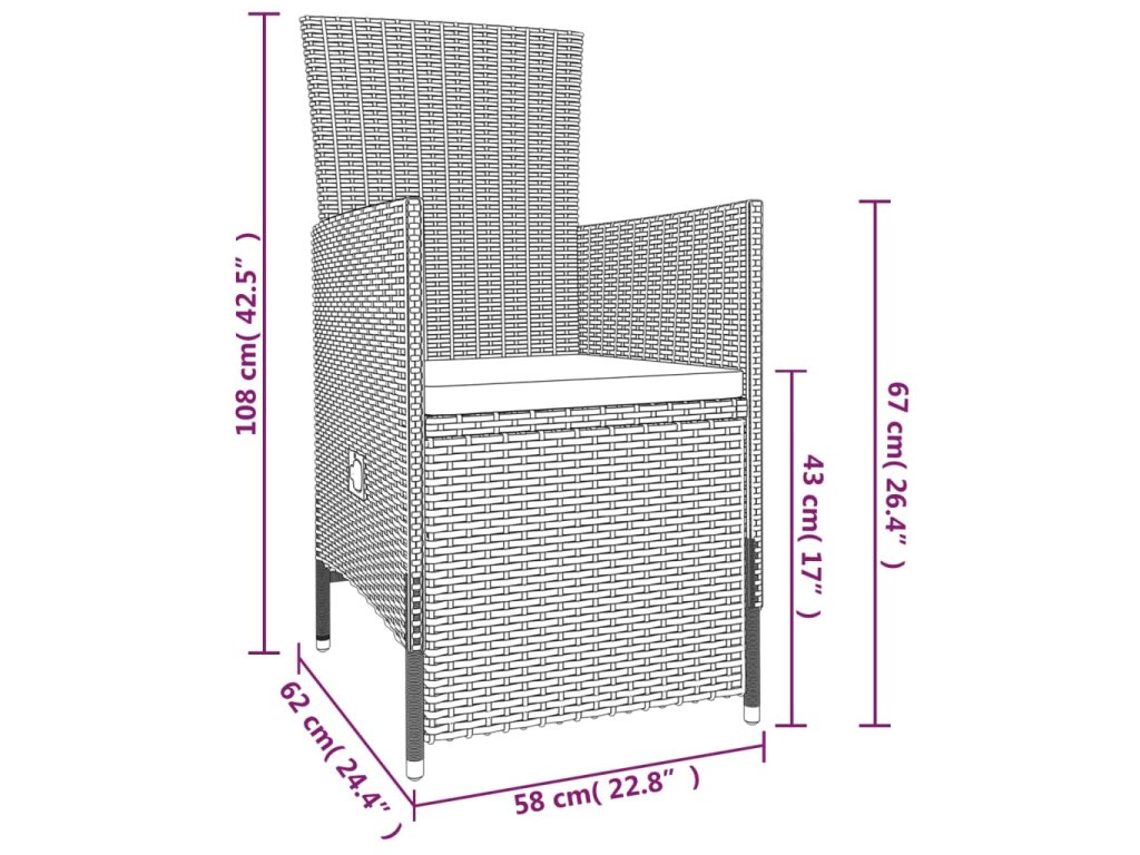 - Rozměry židle (nesklopená): 58 x 62 x 108 cm (Š x H x V)