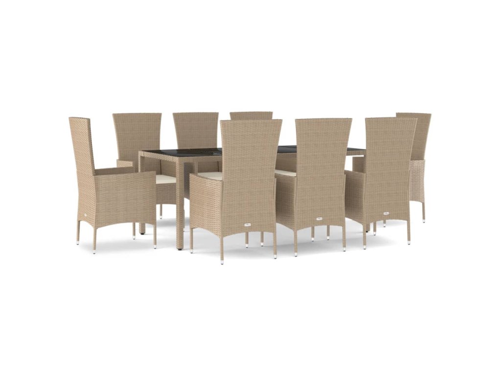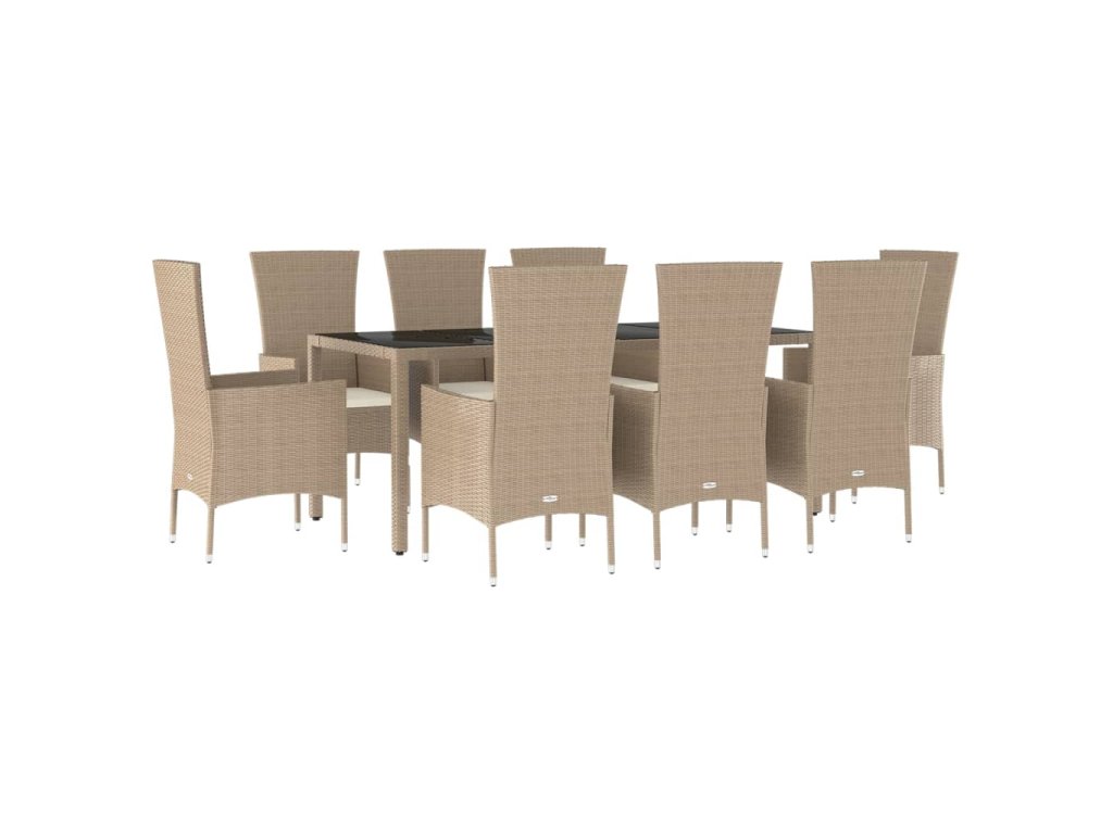 9dílný zahradní jídelní set s poduškami béžový polyratan 3157564