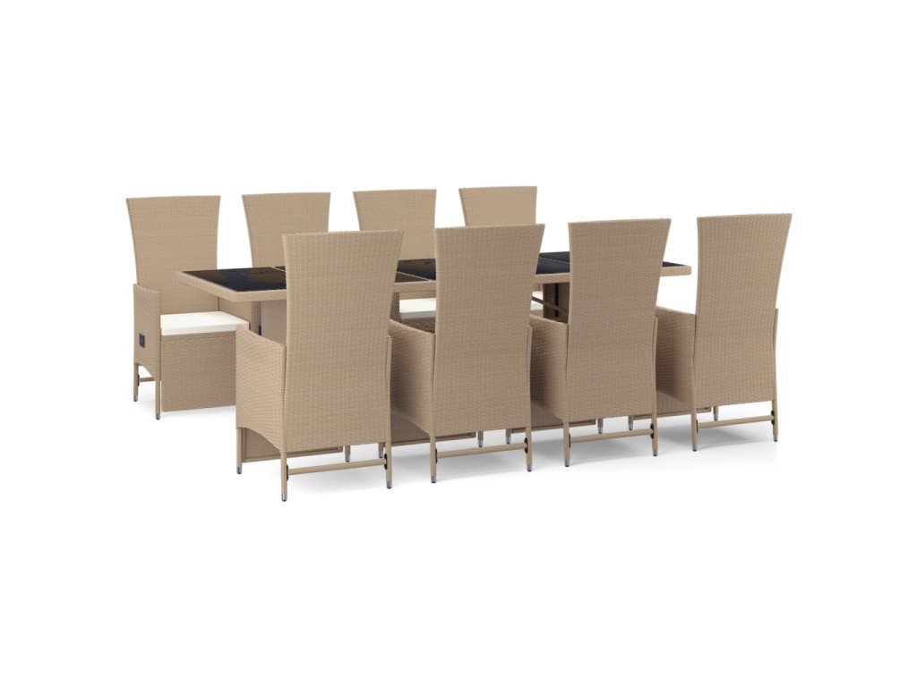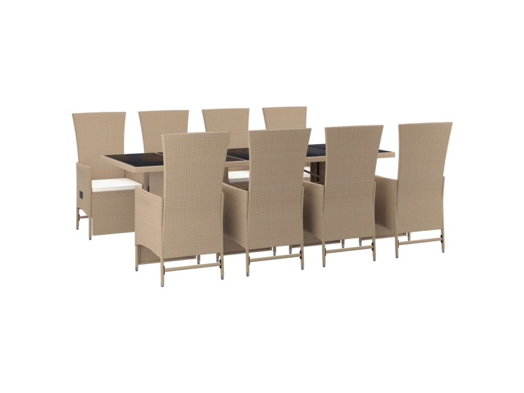 9dílný zahradní jídelní set s poduškami béžový polyratan 3157580