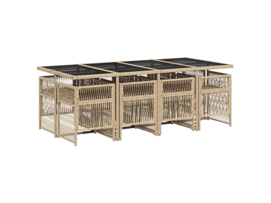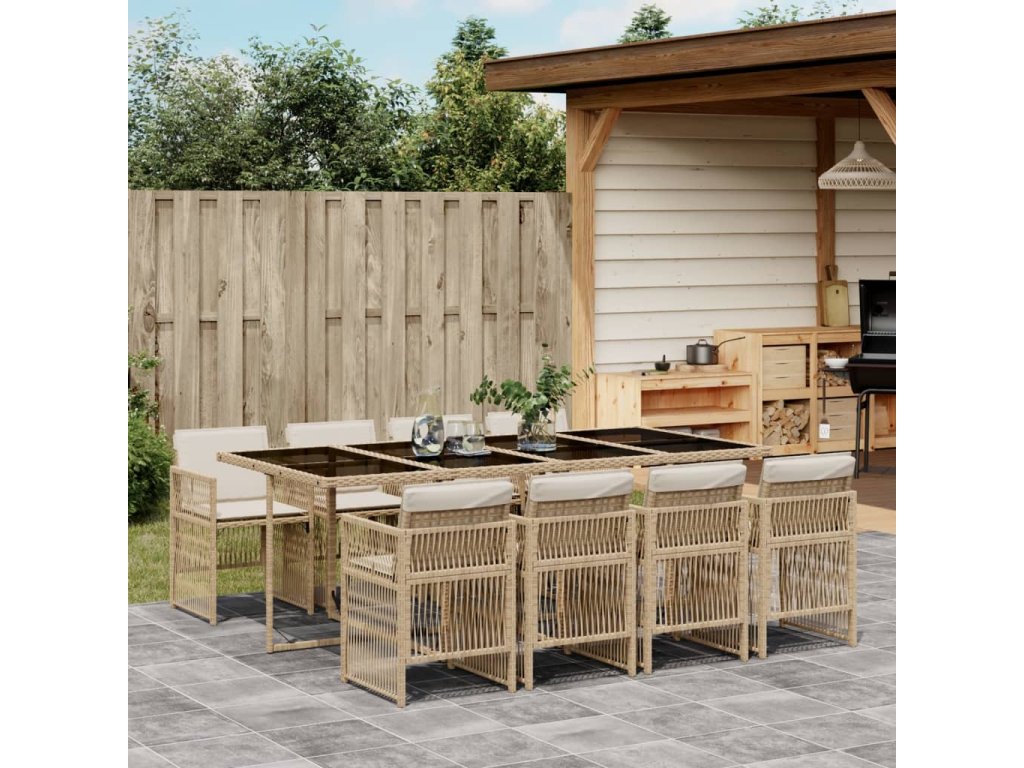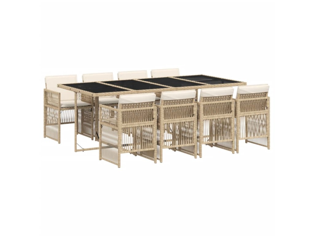 9dílný zahradní jídelní set s poduškami béžový polyratan 3210922