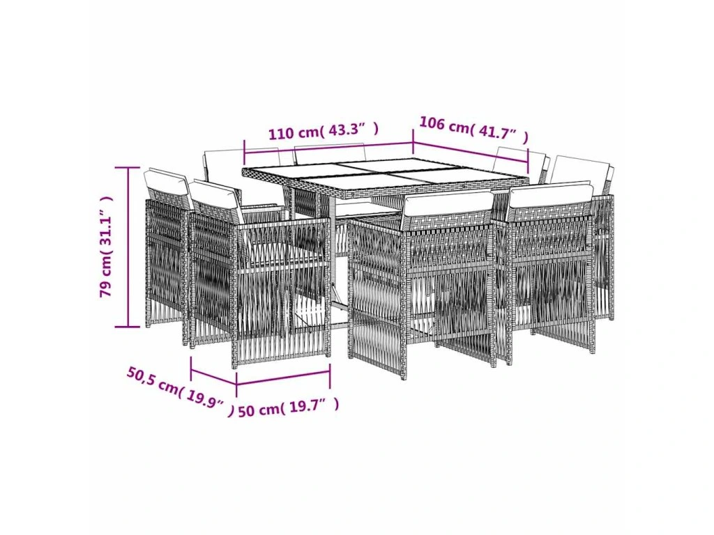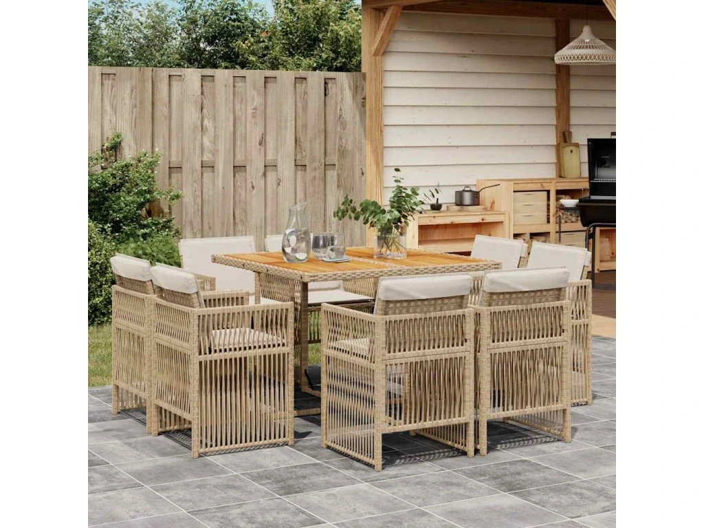 9dílný zahradní jídelní set s poduškami béžový polyratan 3211024
