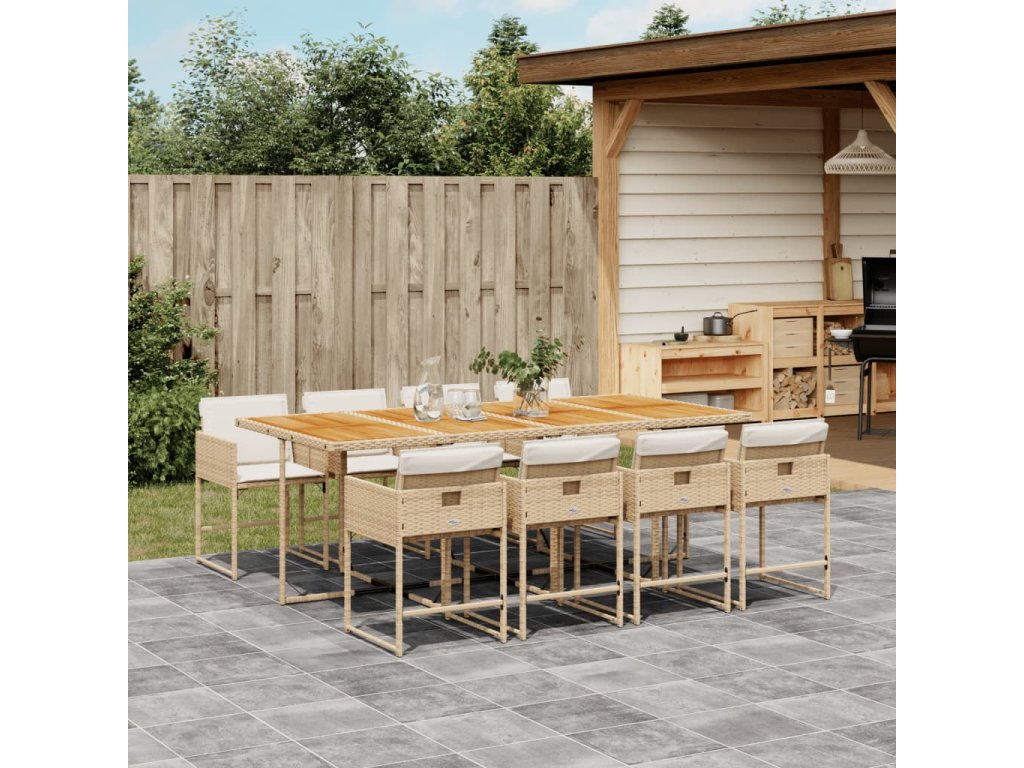 9dílný zahradní jídelní set s poduškami béžový polyratan 3211288