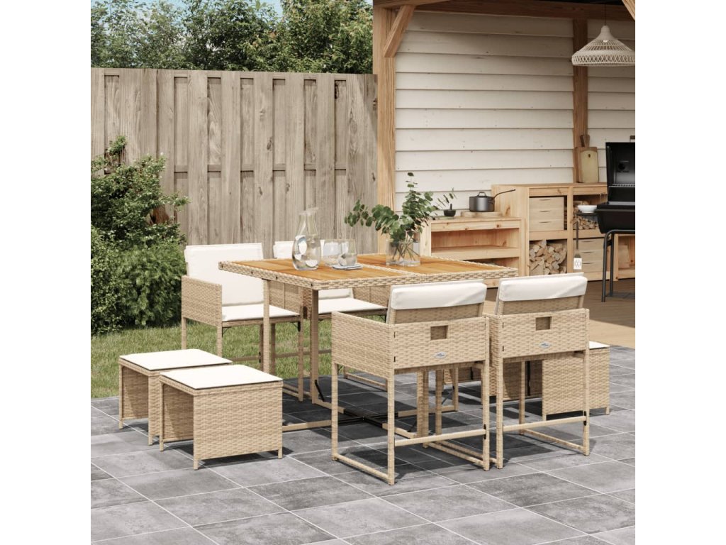 9dílný zahradní jídelní set s poduškami béžový polyratan 3211324