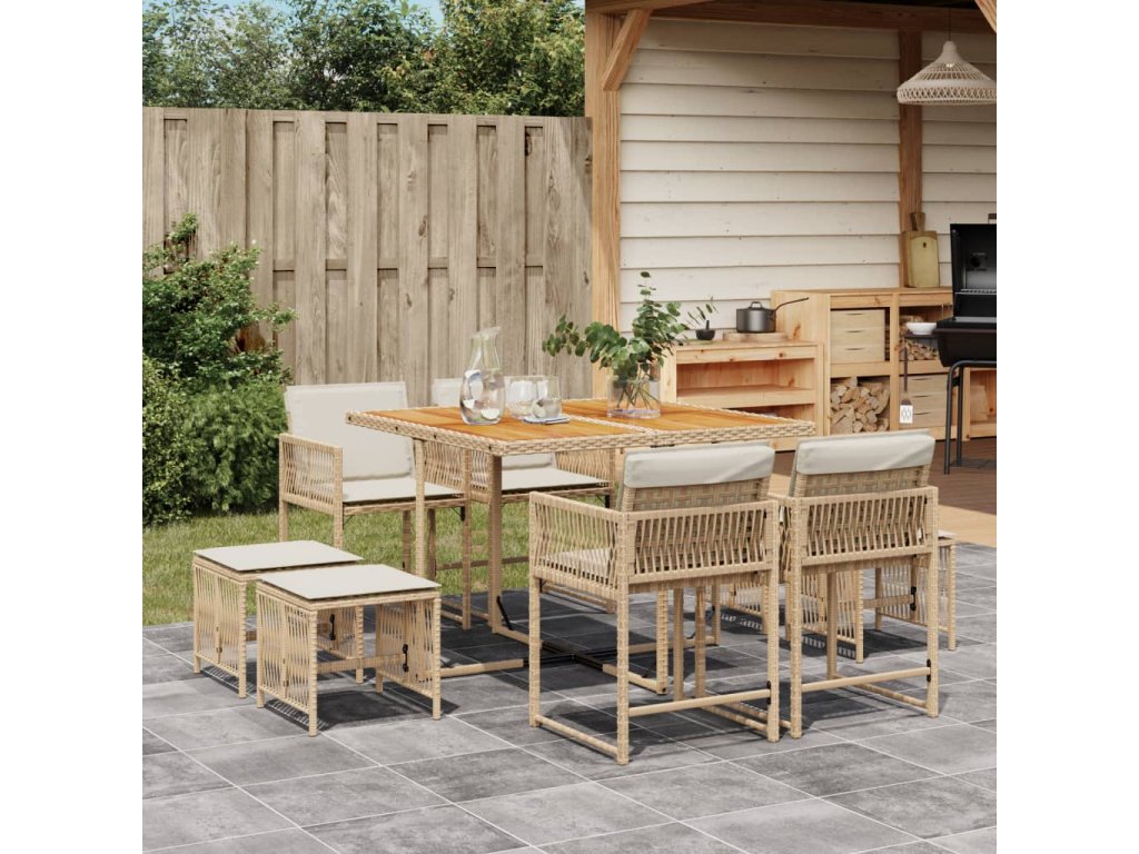 9dílný zahradní jídelní set s poduškami béžový polyratan 3211504