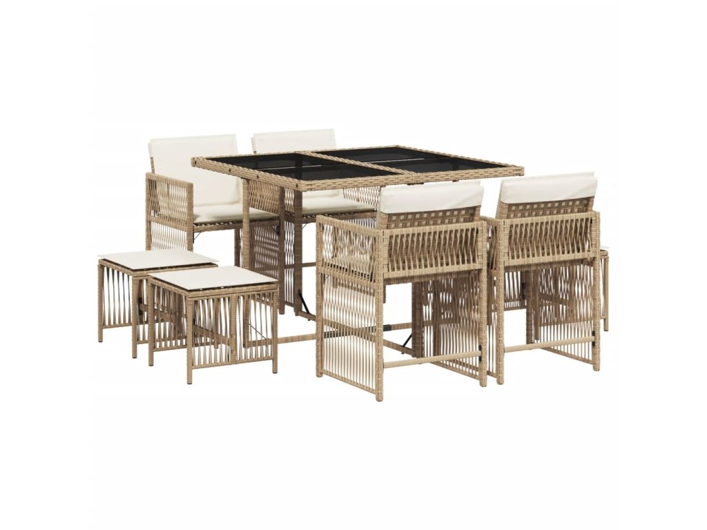 9dílný zahradní jídelní set s poduškami béžový polyratan 3211678