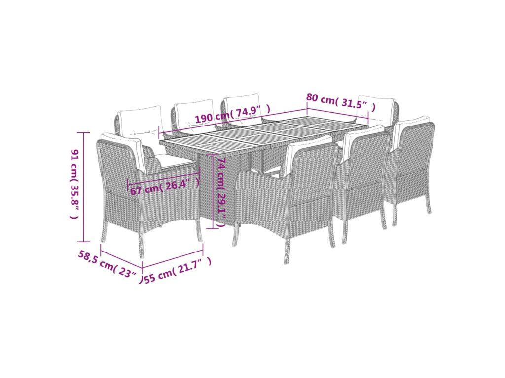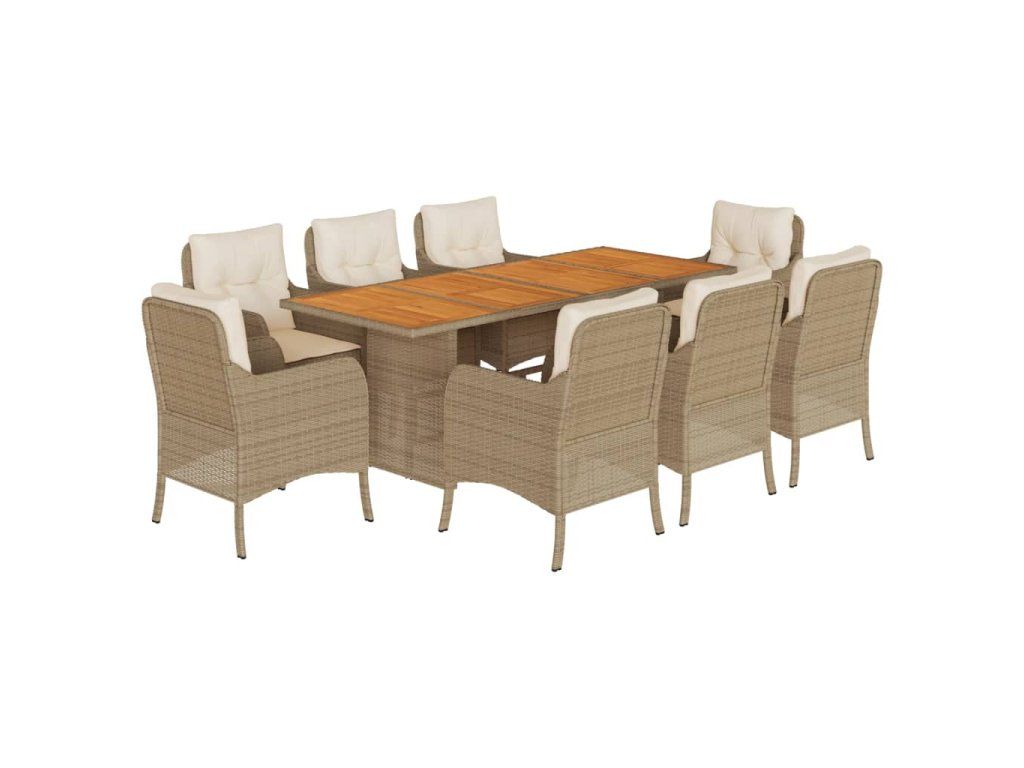 9dílný zahradní jídelní set s poduškami béžový polyratan 3211901
