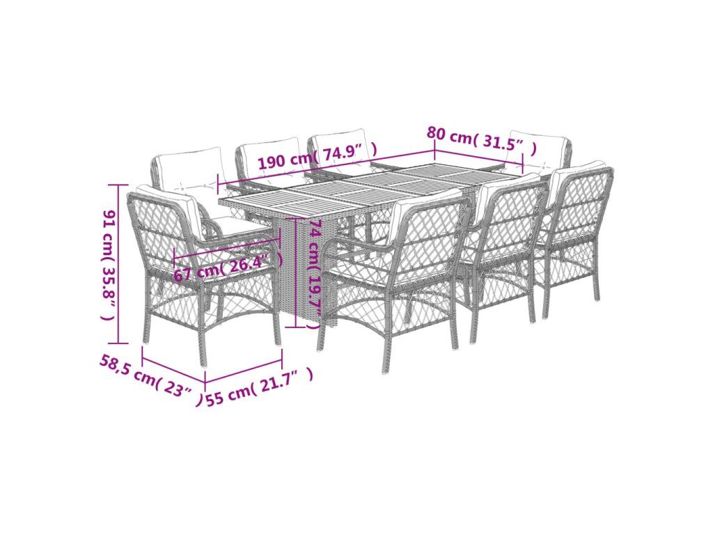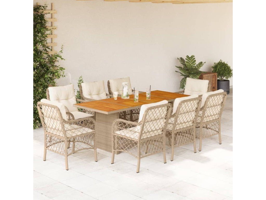 9dílný zahradní jídelní set s poduškami béžový polyratan 3212077