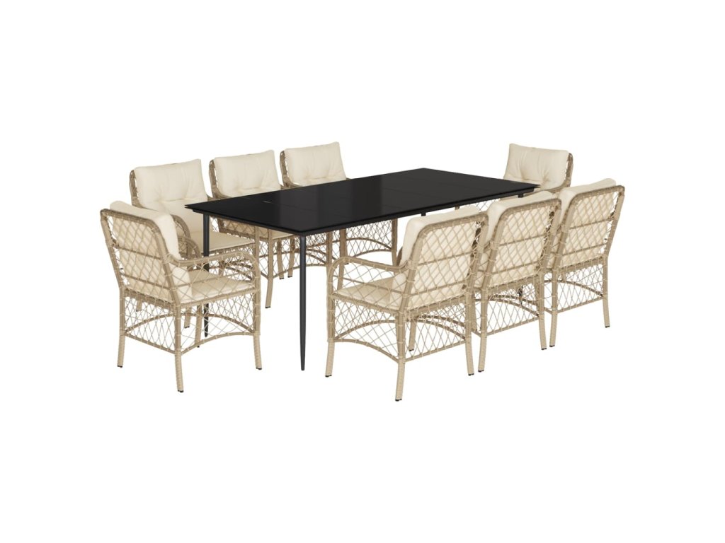 9dílný zahradní jídelní set s poduškami béžový polyratan 3212144