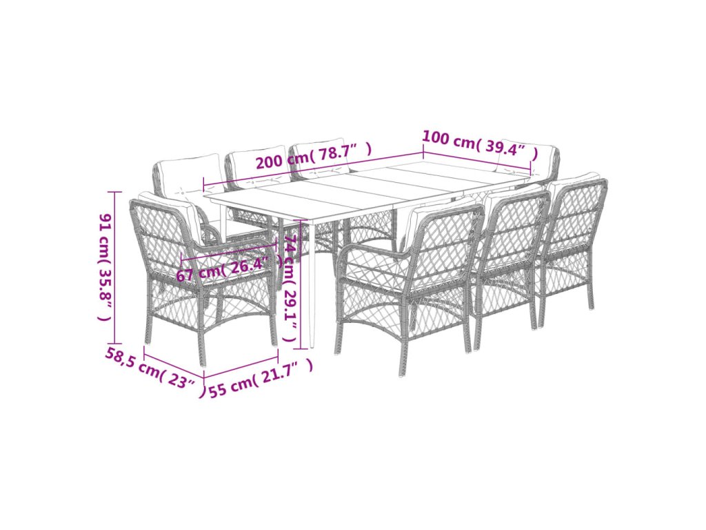 - Rozměry: 200 x 100 x 74 cm (Š x H x V)