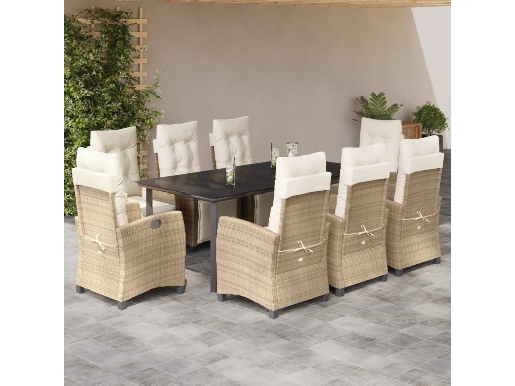 9dílný zahradní jídelní set s poduškami béžový polyratan 3213015
