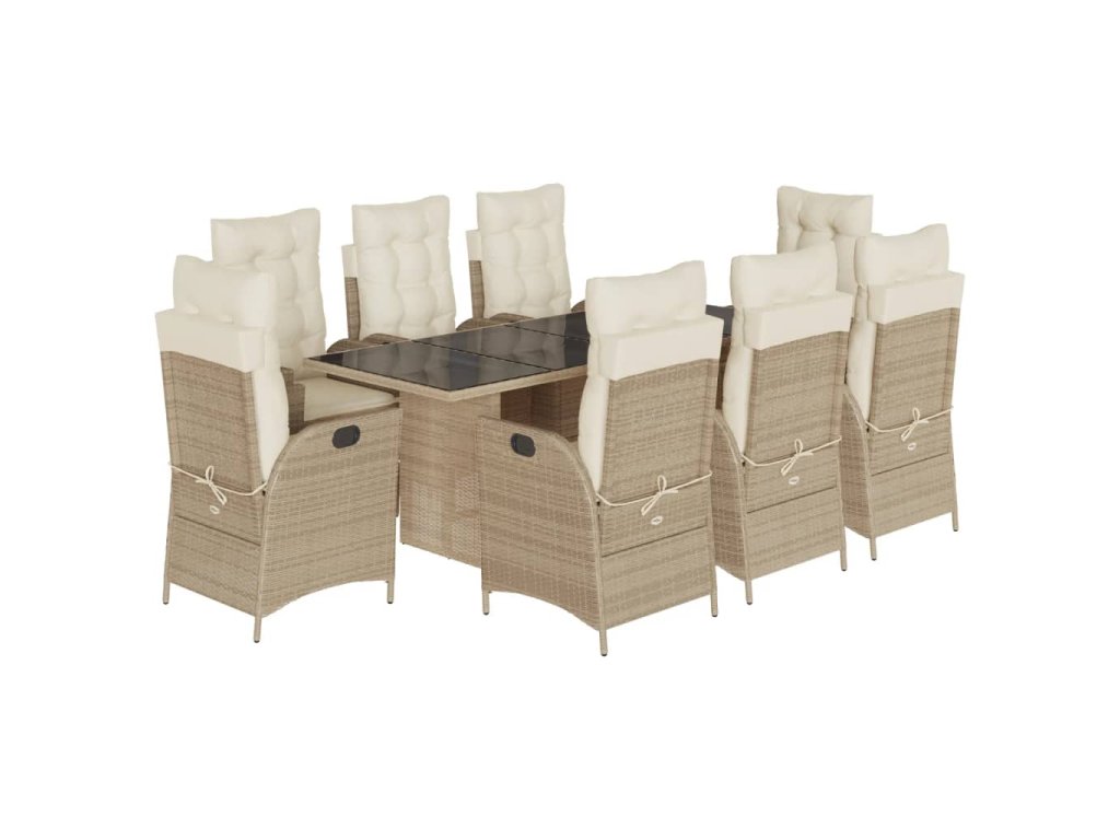 9dílný zahradní jídelní set s poduškami béžový polyratan 3213125