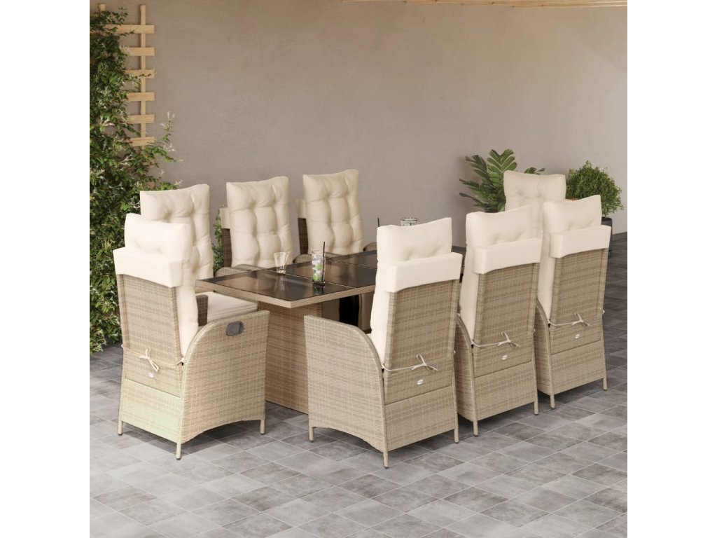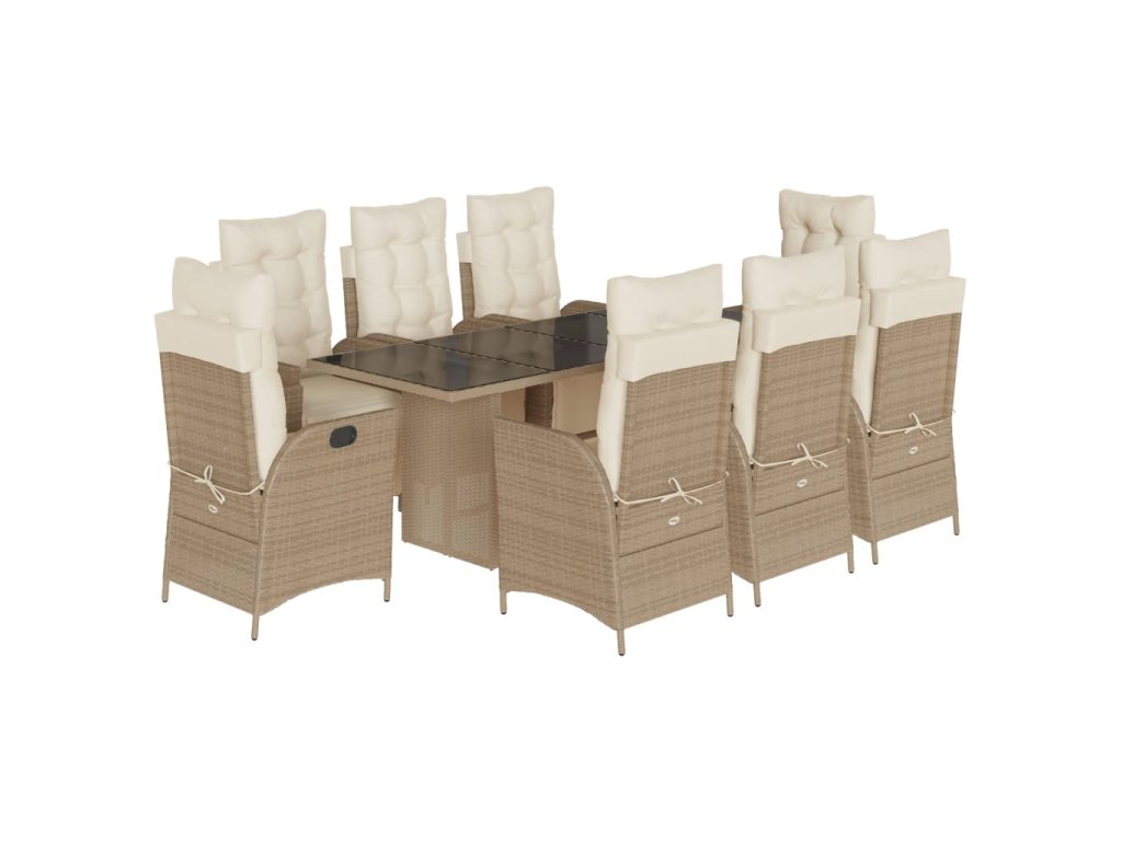 9dílný zahradní jídelní set s poduškami béžový polyratan 3213359