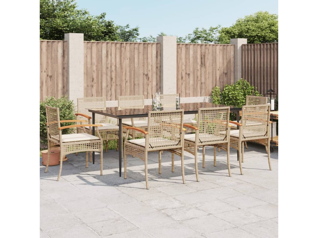 9dílný zahradní jídelní set s poduškami béžový polyratan 3213630