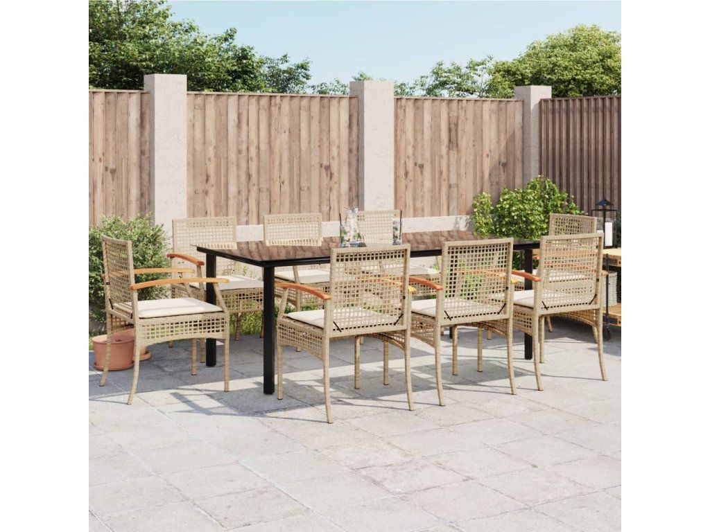 9dílný zahradní jídelní set s poduškami béžový polyratan 3213637