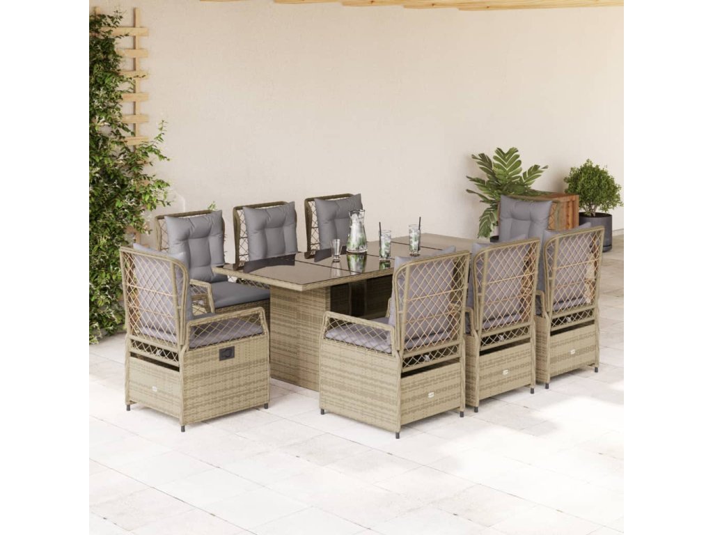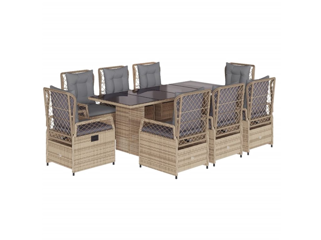 9dílný zahradní jídelní set s poduškami béžový polyratan 3262933