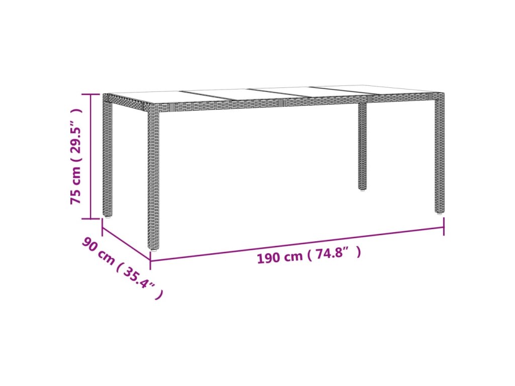 - Skleněná deska stolu: Deska venkovního stolu je zhotovena ze silného a odolného tvrzeného skla, takže ji snadno očistíte vlhkým hadříkem a zároveň do vašeho venkovního prostoru vnese nádech elegance.