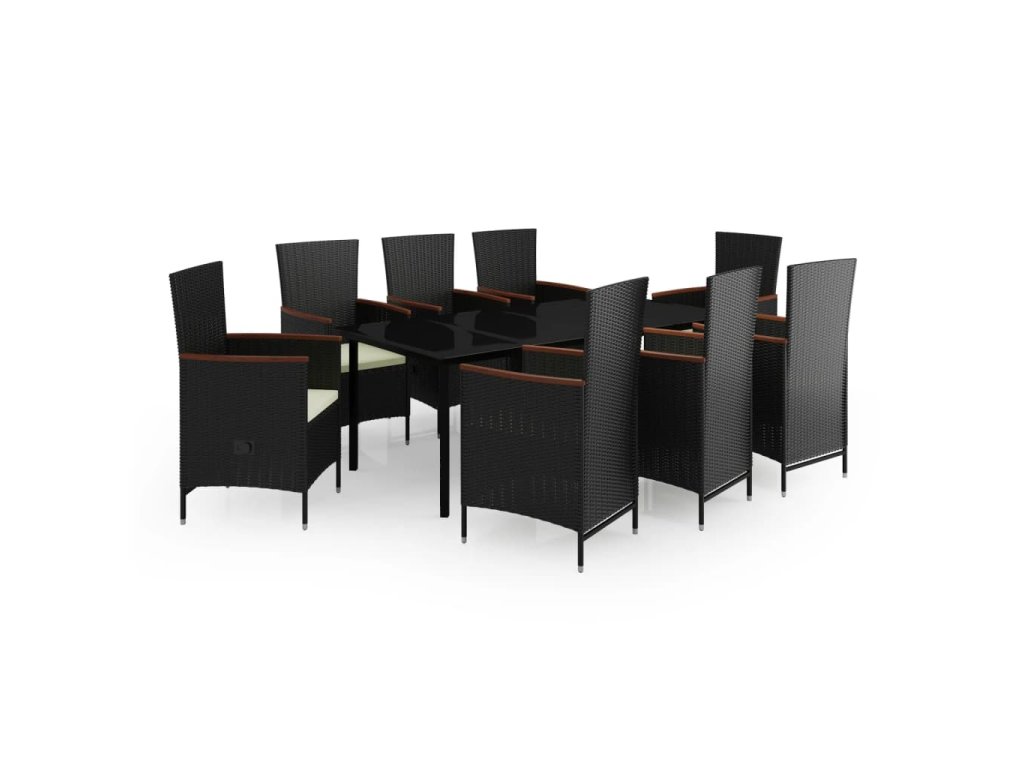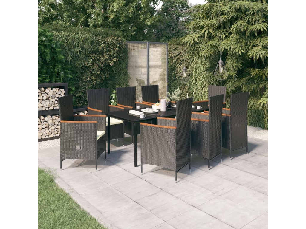 9dílný zahradní jídelní set s poduškami černý 3099430