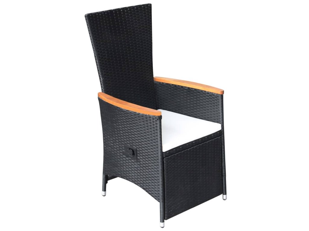 Stůl i židle mají rámy z práškově lakované oceli, jsou tedy robustní, stabilní a vhodné pro každodenní venkovní použití. Židle jsou vyrobené z voděodolného PE ratanu, takže se snadno čistí a hodně toho vydrží. Opěradlo i opěrku nohou si můžete nastavit zatažením za tlačítko na boku. Nábytek má lehkou konstrukci, lze ho tudíž bez námahy přesouvat. Husté polstrované podušky na sedák vám navíc zajistí mimořádné pohodlí. Jejich polyesterové potahy jsou nenáročné na údržbu a dají se stáhnout a vyprat. Hladká skleněná stolní deska, kterou jednoduše očistíte vlhkým hadříkem, je ideální k podávání jídla a pití nebo k vystavení různých dekorativních předmětů.