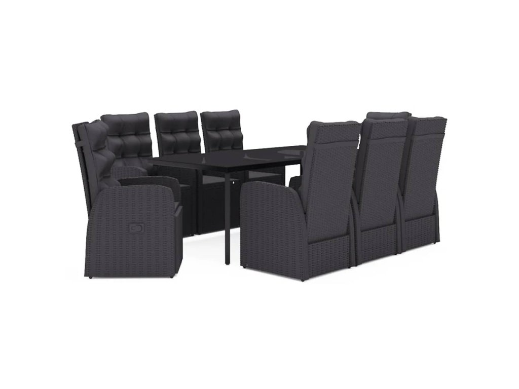 9dílný zahradní jídelní set s poduškami černý 3099500