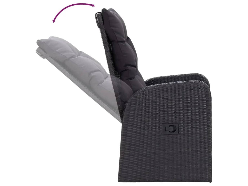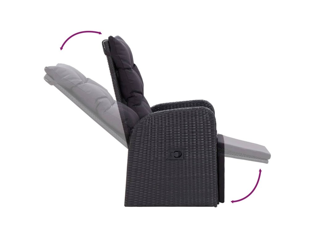 Stůl i židle mají rámy z práškově lakované oceli, jsou tedy robustní, stabilní a vhodné pro každodenní venkovní použití. Židle jsou vyrobené z voděodolného PE ratanu, takže se snadno čistí a hodně toho vydrží. Opěradlo i opěrku nohou si můžete nastavit zatažením za tlačítko na boku. Nábytek má lehkou konstrukci, lze ho tudíž bez námahy přesouvat. Husté polstrované podušky na sedák vám navíc zajistí mimořádné pohodlí. Jejich polyesterové potahy jsou nenáročné na údržbu a dají se stáhnout a vyprat. Hladká skleněná stolní deska, kterou jednoduše očistíte vlhkým hadříkem, je ideální k podávání jídla a pití nebo k vystavení různých dekorativních předmětů.