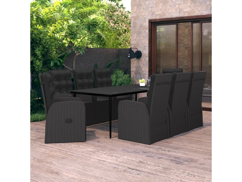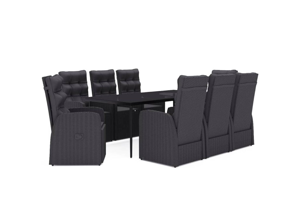 9dílný zahradní jídelní set s poduškami černý 3099504
