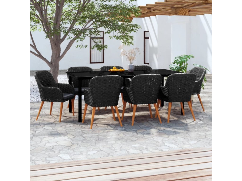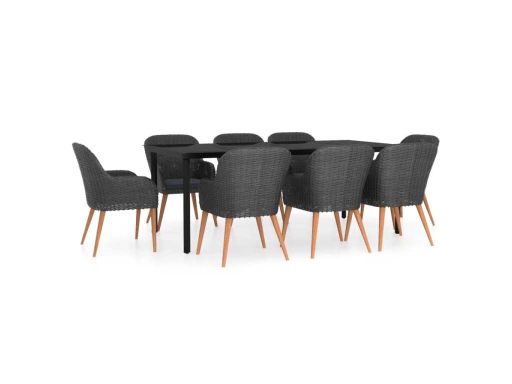 9dílný zahradní jídelní set s poduškami černý 3099510