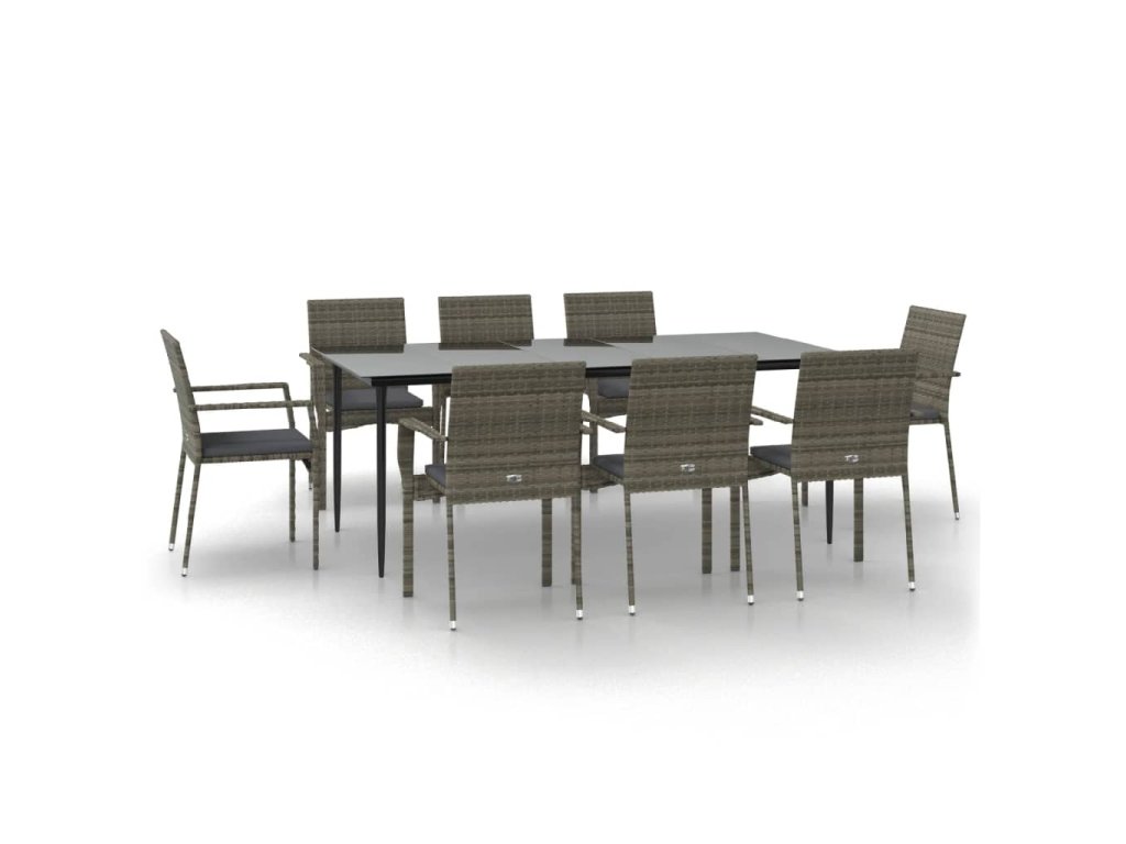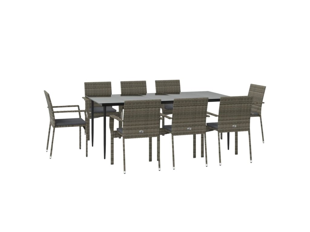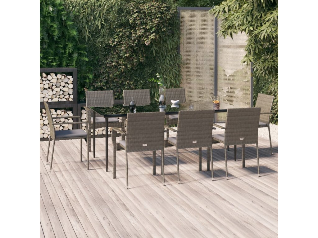 9dílný zahradní jídelní set s poduškami černý a šedý polyratan 3185130
