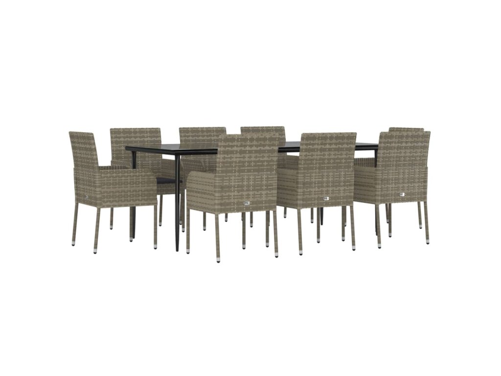 9dílný zahradní jídelní set s poduškami černý a šedý polyratan 3185153